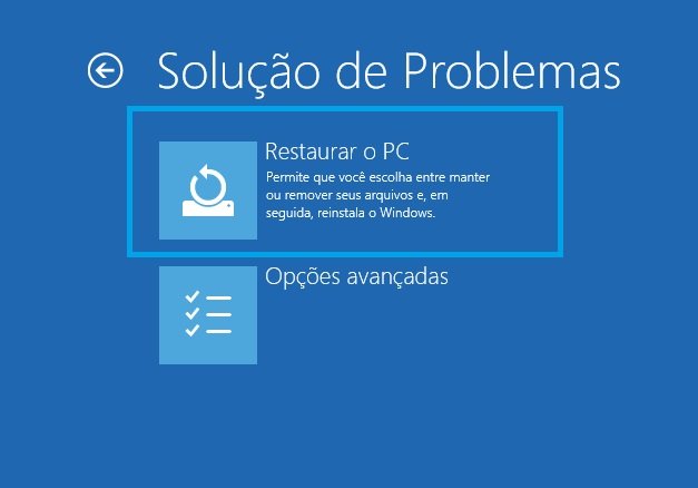 “Reparar o computador” > “Solução de problemas” > “Restauração do Sistema”. - Escolha um ponto anterior à falha.