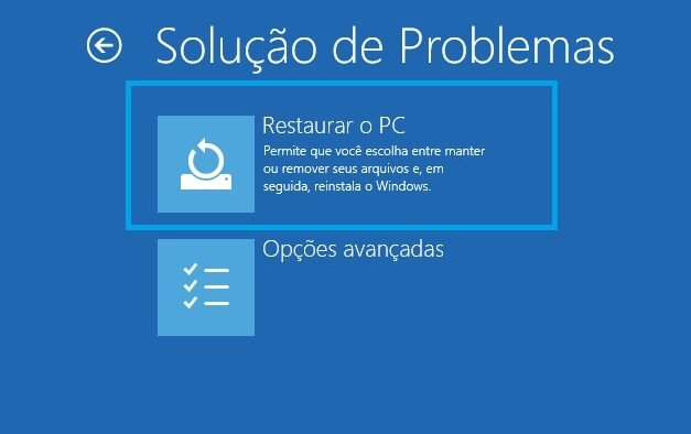 “Reparar o computador” > “Solução de problemas” > “Restauração do Sistema”. - Escolha um ponto anterior à falha.